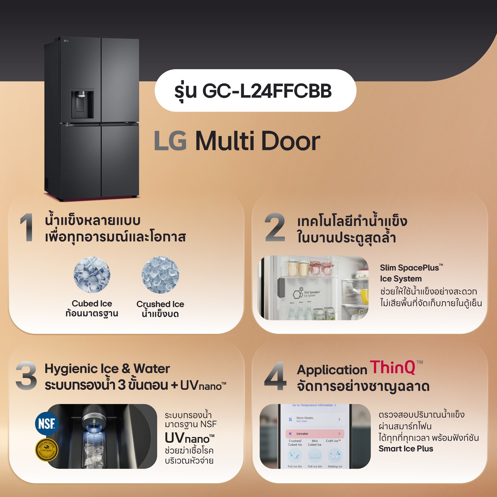 ตู้เย็น Multi-Door GC-L24FFCBB 22.6 คิว ระบบ Smart Inverter Compressor