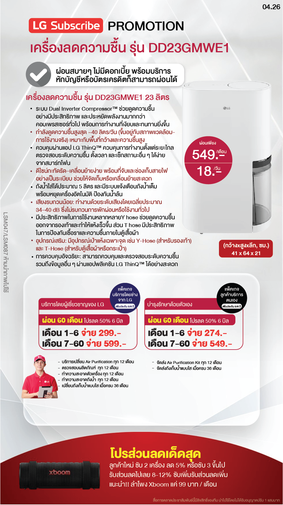 ขนาด 23 ลิตร มาพร้อม Dual Inverter ประหยัดพลังงาน เสียงเงียบเพียง และควบคุมผ่านแอป LG ThinQ™