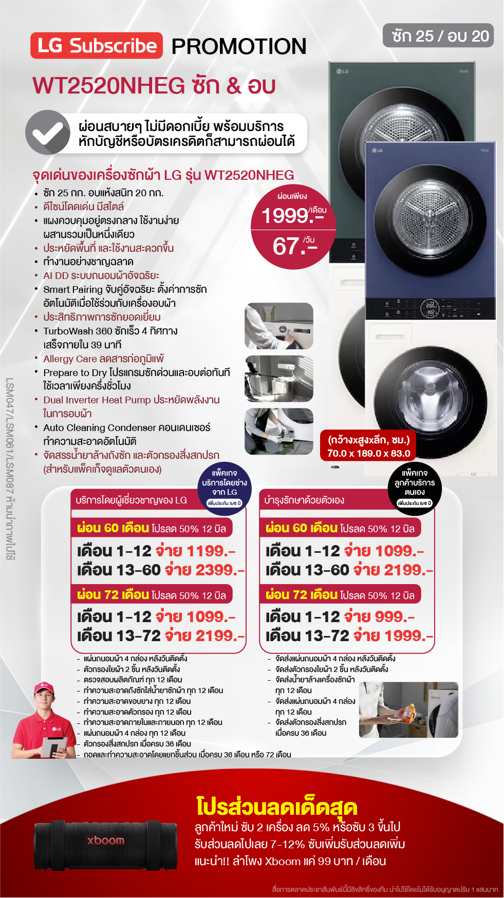 60 เดือน (รับประกันเครื่อง 5 ปี), บริการด้วยตนเอง, ทุก 12 เดือน